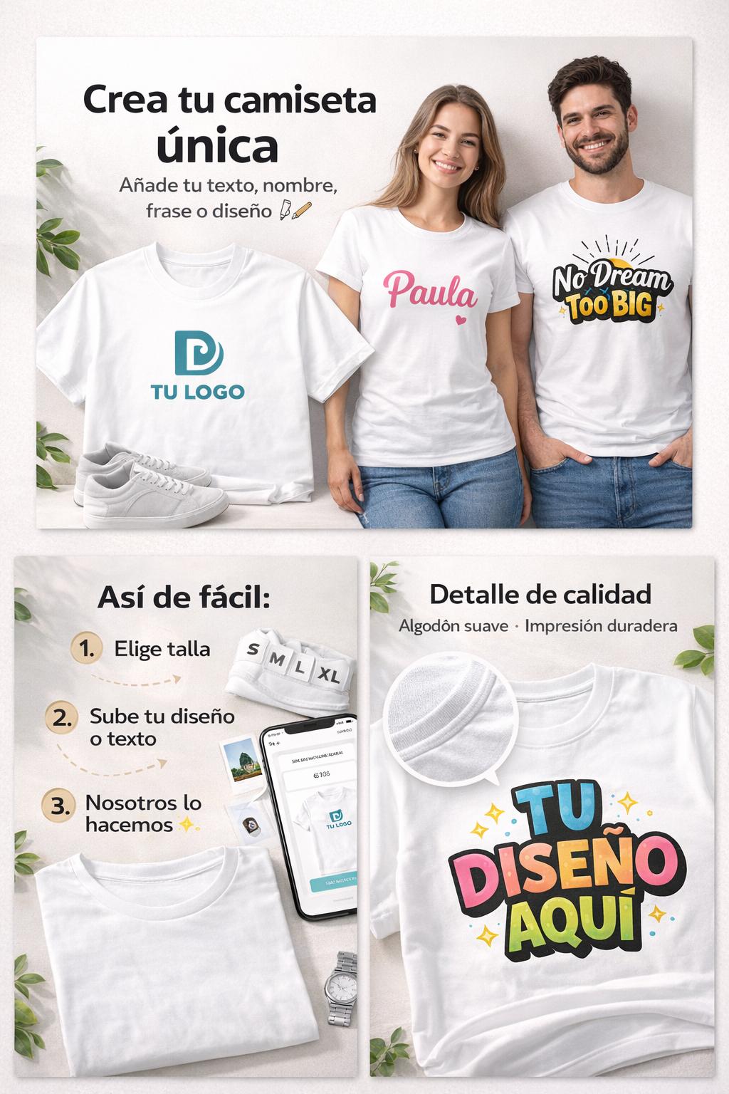 Crea tu camiseta única y destaca entre la multitud. Con nuestra herramienta de diseño, tú eres el artista: sube tus fotos, añade frases épicas o elige tus gráficos favoritos.