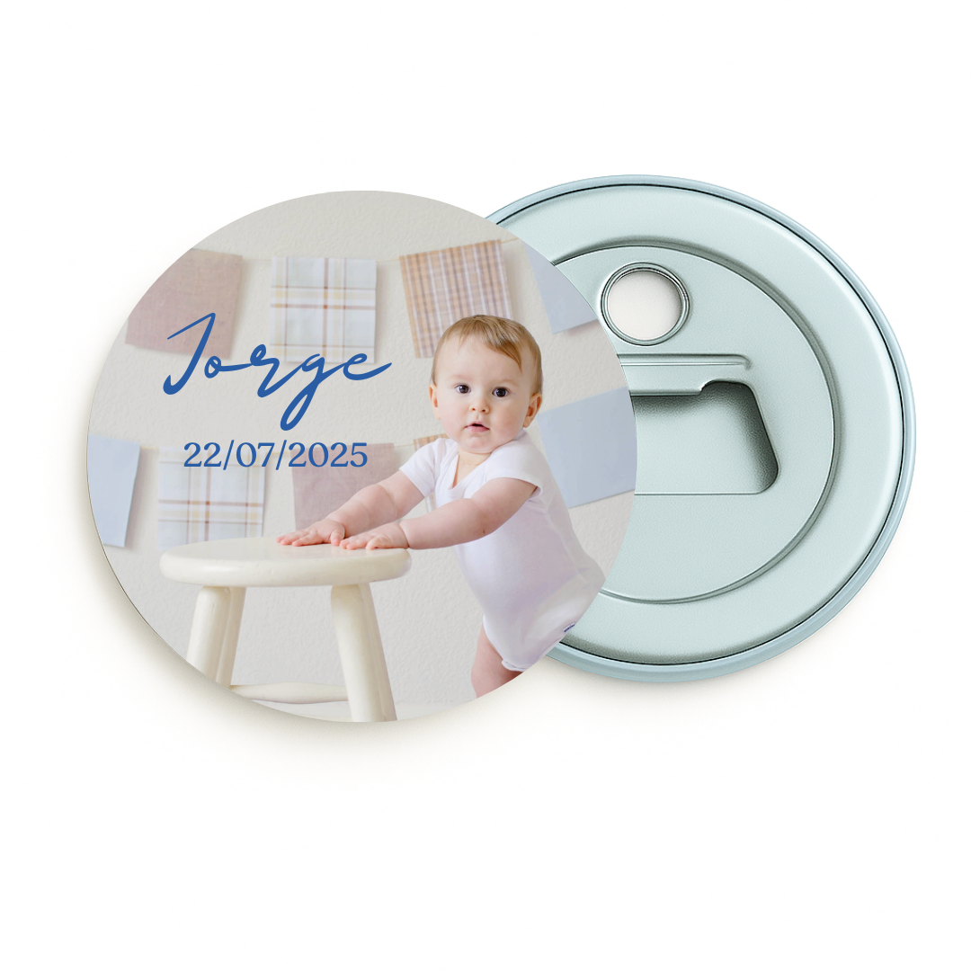 Este abre botellas personalizadas para bautizo combina una foto y un texto especial para hacer tu evento aún más memorable