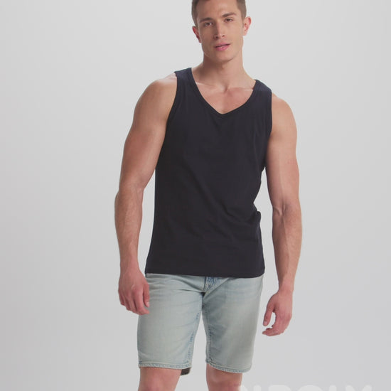 Camiseta de tirantes anchos, corte semientallado, ribeteado en punto liso en escote y sisa. Costuras laterales remalladas a 4 hilos dándole mayor durabilidad.