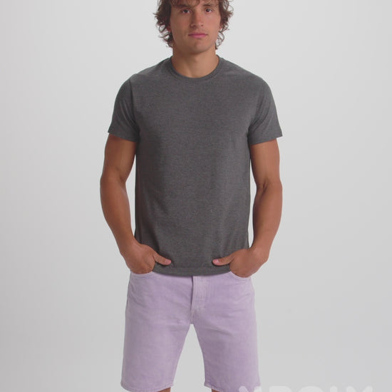 Camiseta de manga corta tubular con acabado vigoré. Cuello redondo en punto canalé 1x1 con cubre costuras interior.