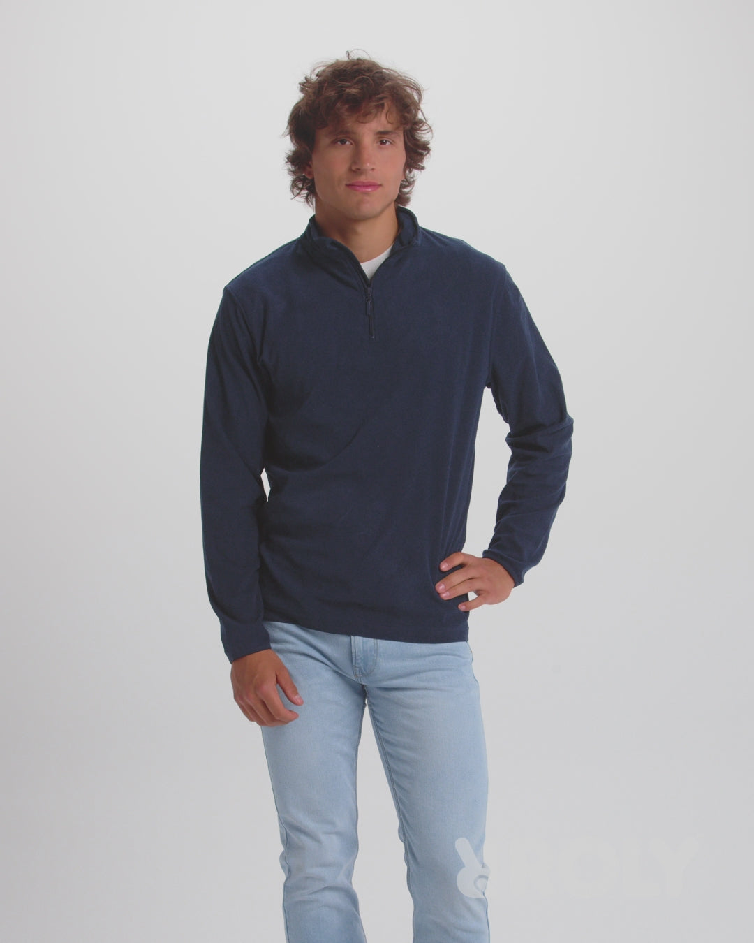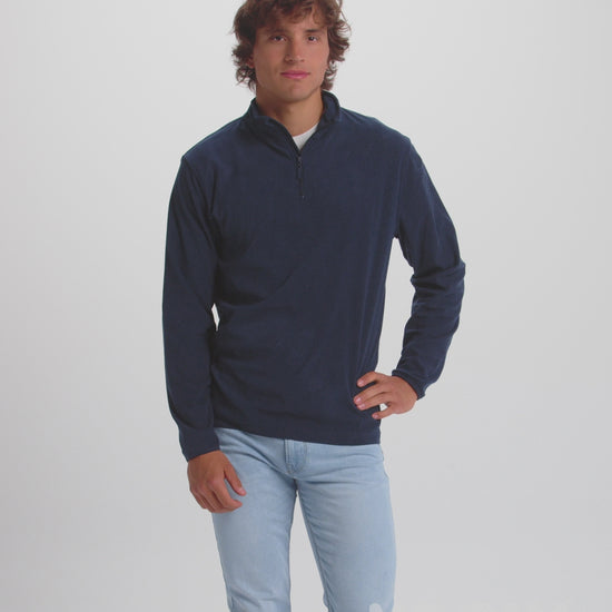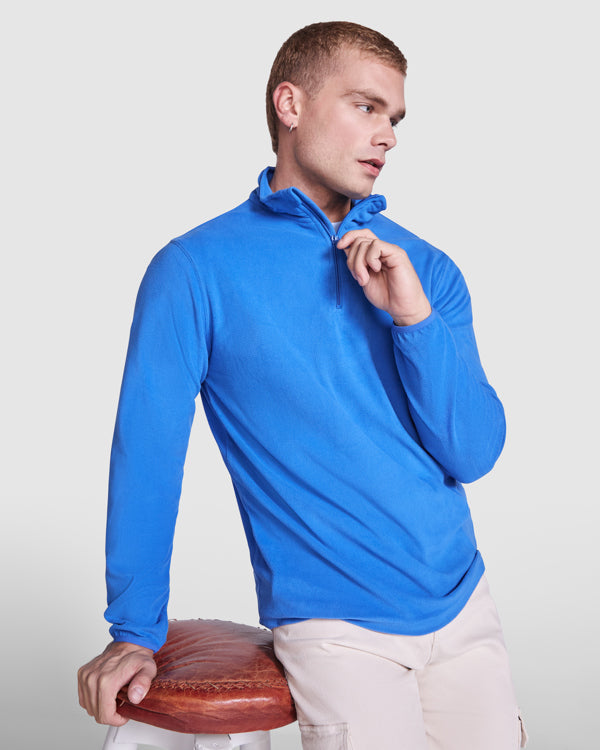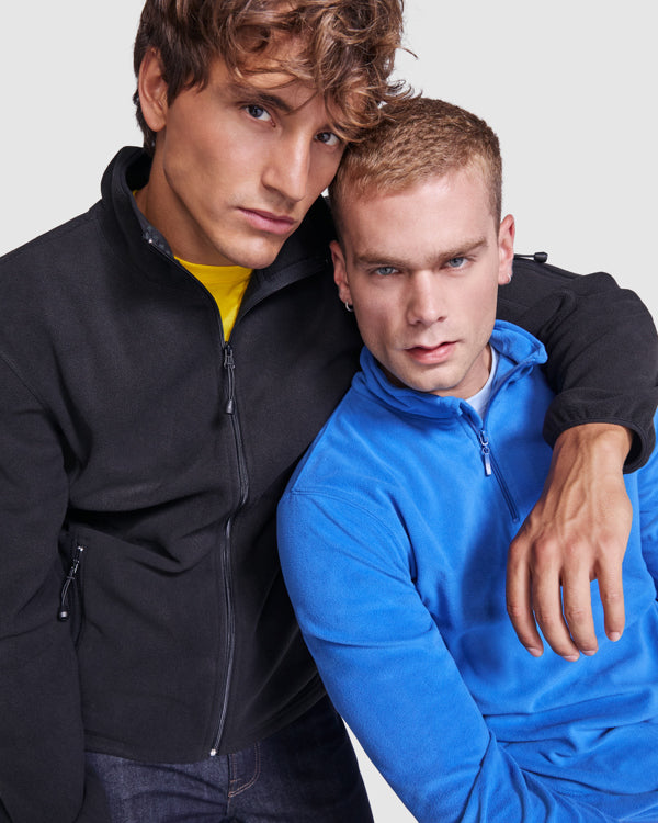 Micropolar con media cremallera en cuello y protector de barbilla. Puños con ribete elástico a tono.