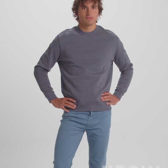 Sudadera de algodón con diseño clásico, y felpa perchada en el interior. Cuellos, puños y bajo con canalé 1x1. Cubrecosturas reforzado en el interior del cuello.